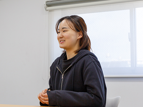 撮影中は、仲間である社員たちの視線に照れていて、