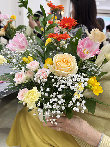 みなさんが作ったフラワーアレンジメント、どれも素敵です。
